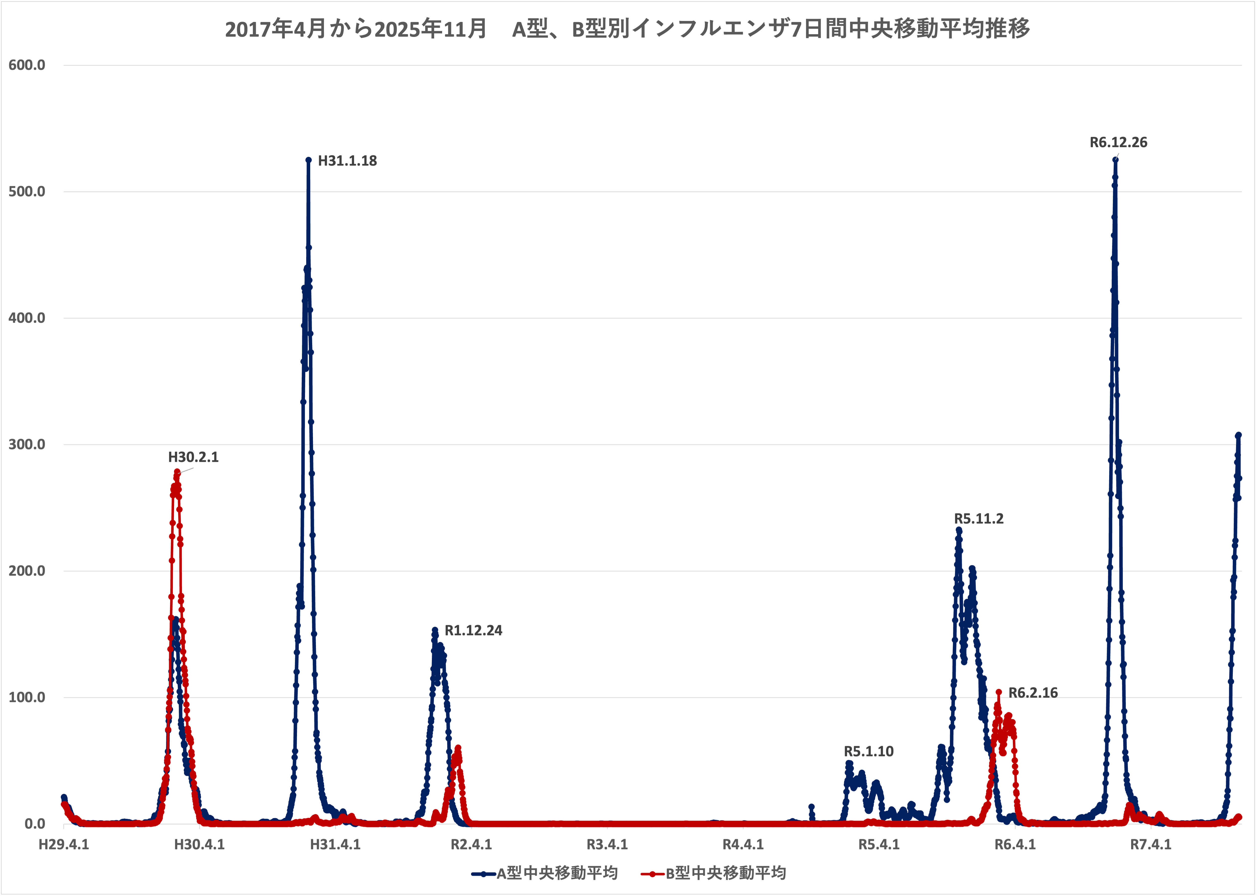 ![]() AB型別インフルエンザ 7日間中央移動平均 |