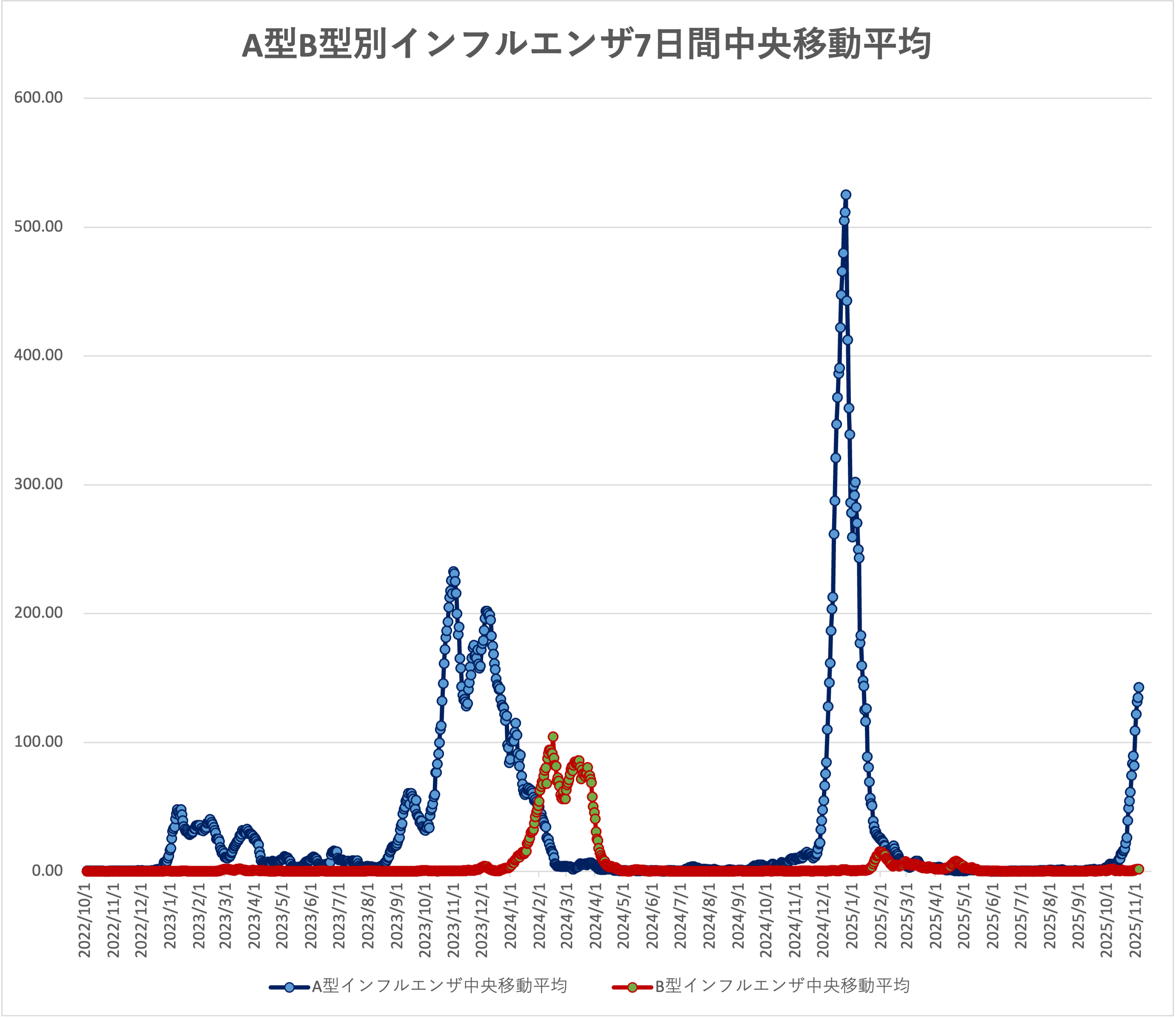 ![]() 2017年から2025年11月までの A型B型の推移 |