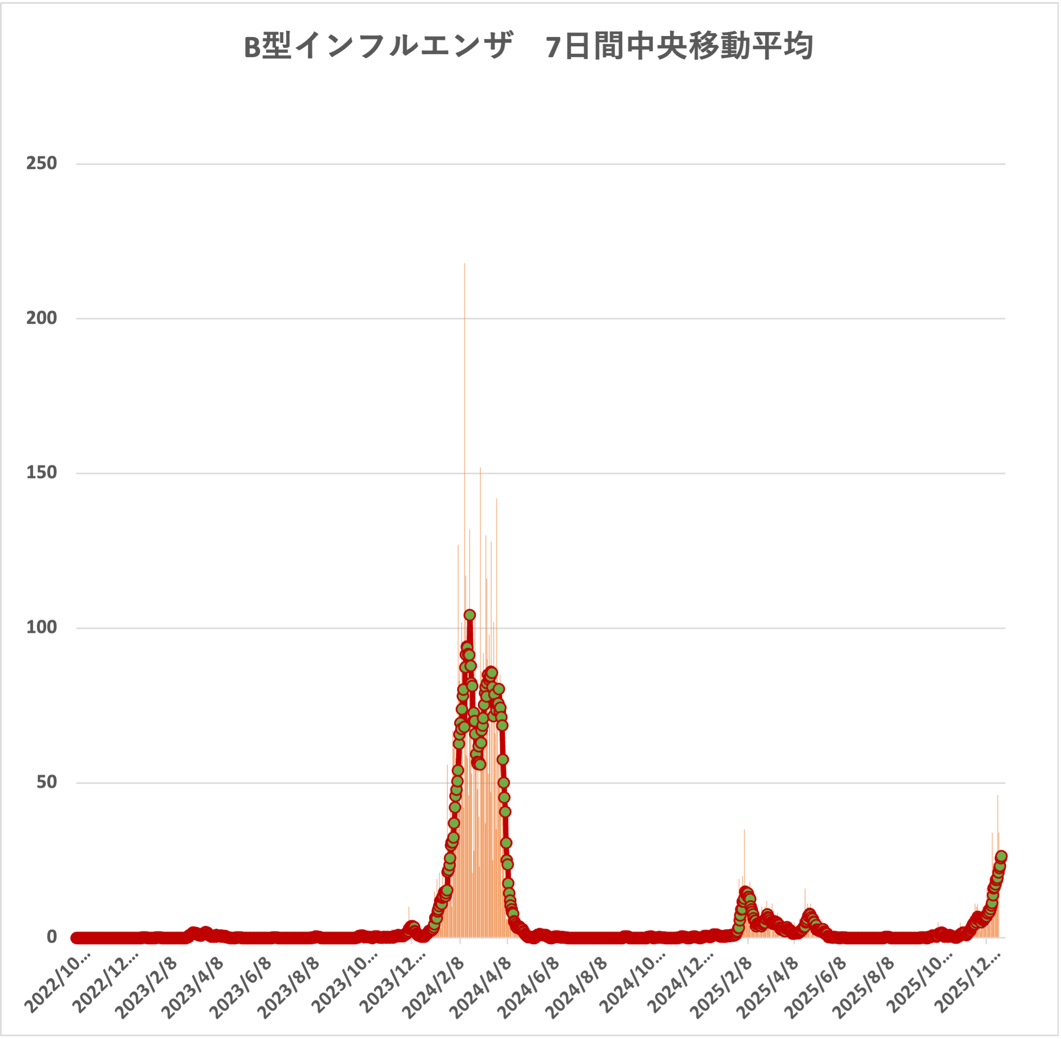 ![]() B型インフルエンザ 7日間中央移動平均 |